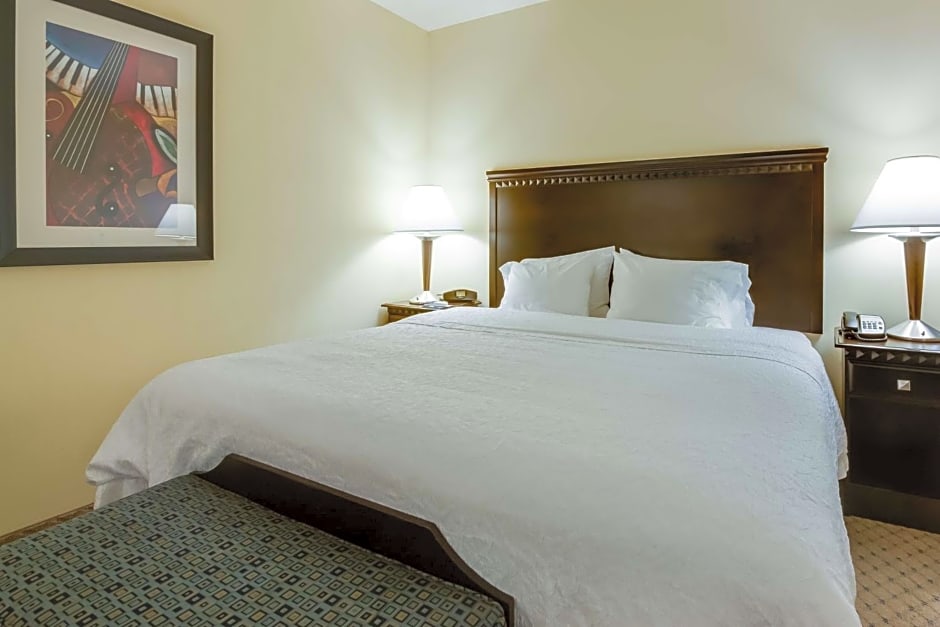 Free WiFi, sofa bed, desk and ergonomic chair, microwave, mini-refrigerator, 32-inch HDTV. Settle into this studio suite, featuring a sofa bed in addition to two queen-sized beds. Keep in touch with friends and family through our free WiFi access, or work in comfort at the large desk with ergonomic chair. Stretch out on one of the beds and watch premium HD channels on the 32-inch LCD TV. Enjoy a peaceful night's sleep in a clean and fresh Hampton bed®. Prepare a snack in the small kitchen area, equipped with a microwave and mini-refrigerator. Other amenities in this room include fluffy towels, bath products, and weekday newspaper delivery.